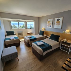 Cuenta con habitaciones con conexión Wi-F y con ubicación frente al lago y a las montañas de las cuales se pueden admirar una hermosas postales de Bariloche.