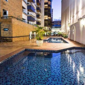 Excelentemente ubicado, el Hotel H cuenta con todos los servicios para que vivas una experiencia increíble. Habitaciones totalmente equipadas, sala de juegos, piscina al aire libre y climatizada, recepción y seguridad las 24hs.
